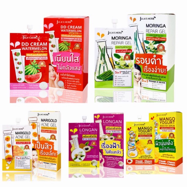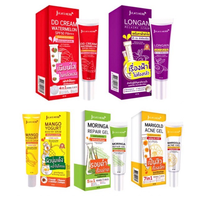 Source: cf.shopee.co.th จุฬาเฮิร์บ jula's herb ดีดีครีม + เจลมะรุม + ครีมแต้มสิว + เซรั่มทาฝ้าลำไย + เซรั่มหน้านุ่มมะม่วงโยเกิร์ต